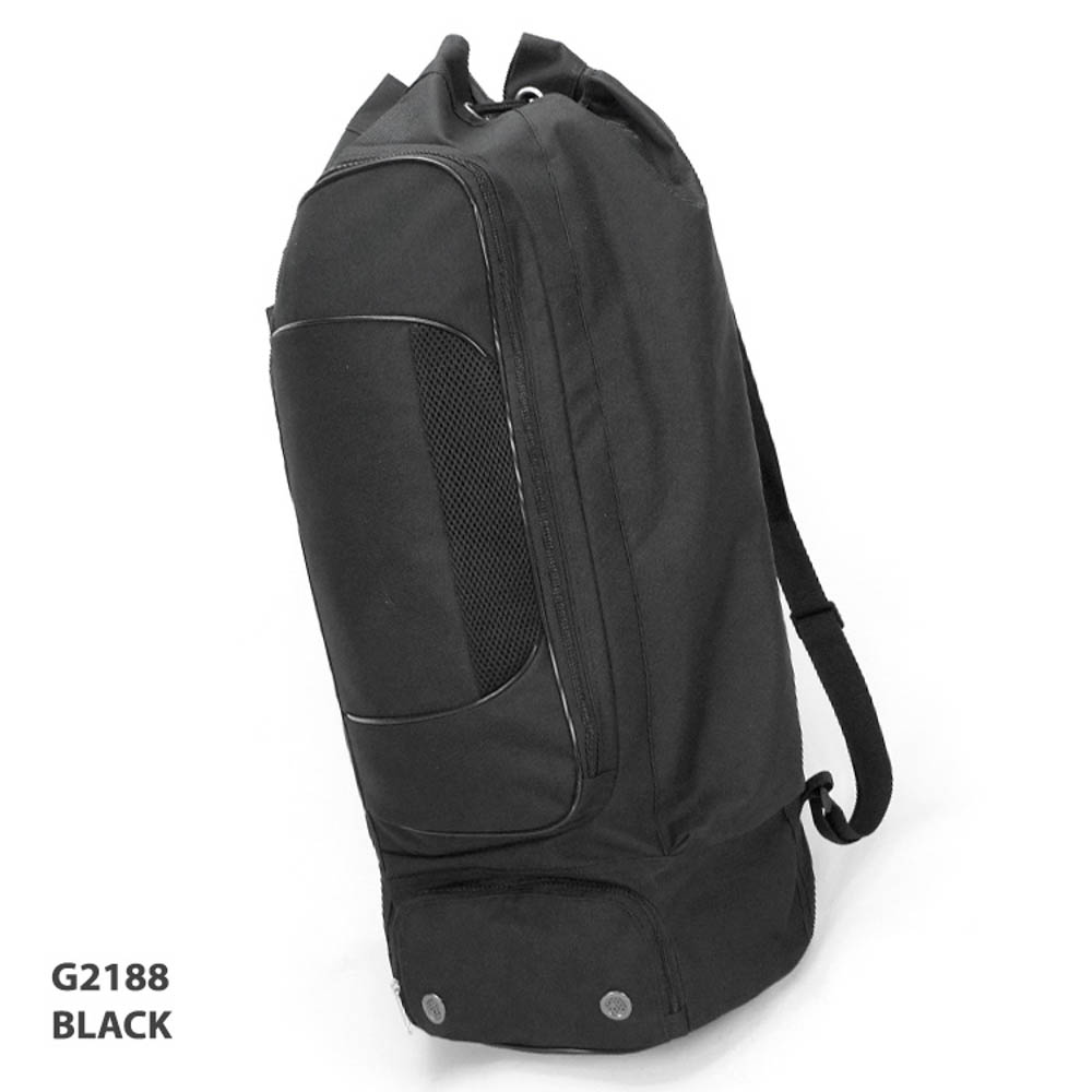 - Large main zippered compartment with drawstring closure