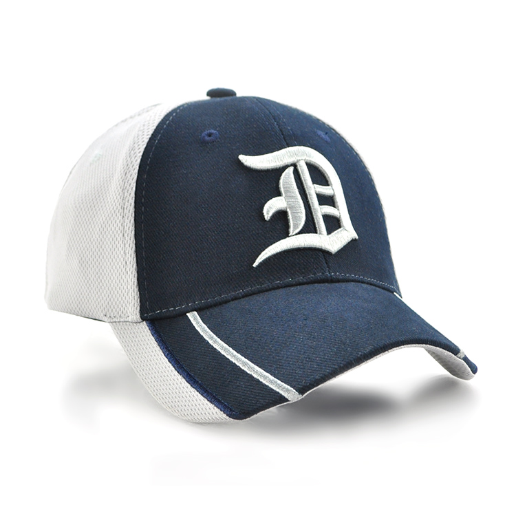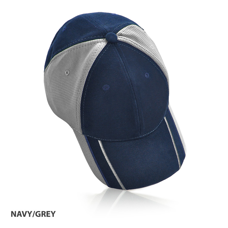 - Embroidered stripe and mesh panel peak