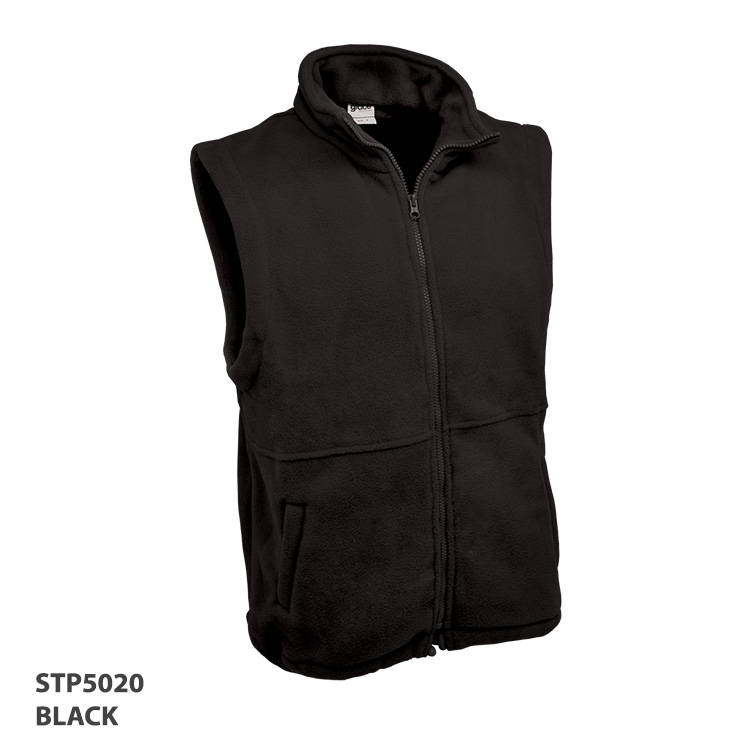 100% Polyester, Low pill fleece fitted vest
